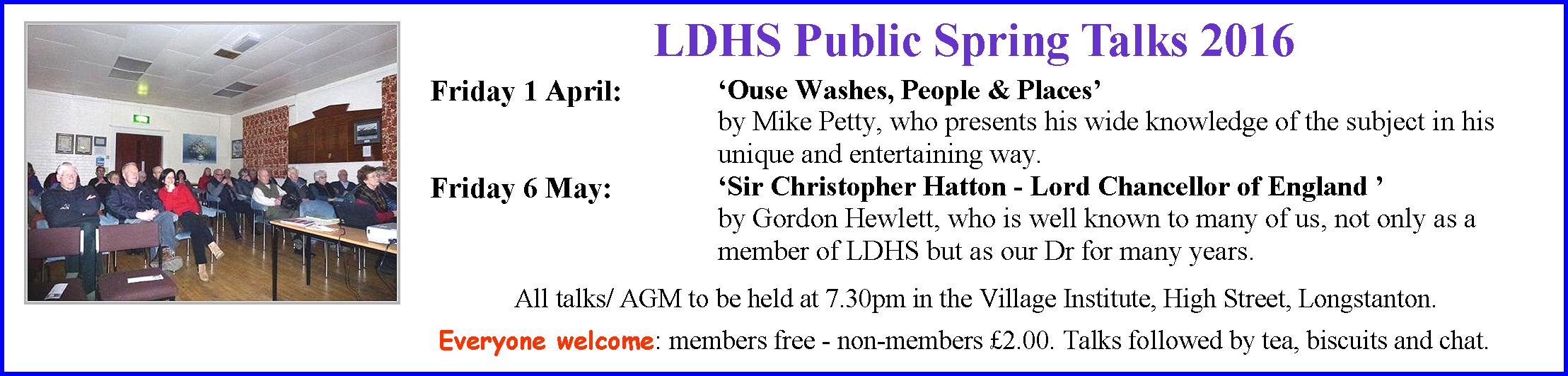 A reminder to everyone that the LDHS April Talk will take place THIS FRIDAY (1 April) at 7.30pm in the Longstanton Village Institute. Mike Petty is hosting the talk entitled “Ouse Washes – People & Places” and he is always a most entertaining speaker. Tea & Biscuits will be served after the talk.