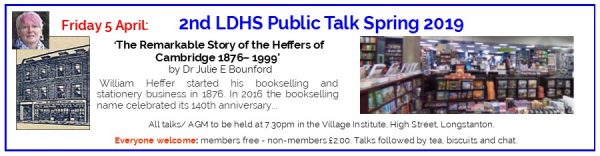 A reminder that the 2nd LDHS Talk of the Spring Season will take place on Friday 5 April at the Village Institute, High Street, Longstanton starting at 7.30pm. Non- members welcome.