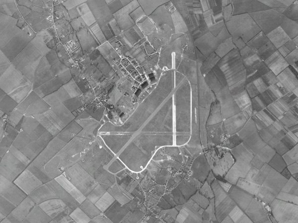 Below: Aerial view of RAF Oakington 1945